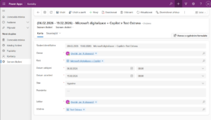 Na ukázkovém demu je vidět, že model-driven aplikace dává standardizované rozhraní pro práci s procesně významnými entitami. V „Seznamu školení“ evidujete běhy kurzů včetně vazby na kurz, datum zahájení a ukončení, stav, lektora a učebnu. Nad tím pak existuje návazná evidence účastníků, která je přímo svázaná s konkrétním během školení. Kontakty jsou vedené jako samostatná entita a fungují jako zdroj pravdy pro identitu, e-mail a další údaje, které se používají napříč procesy, aniž by se kopírovaly do dalších tabulek. Výsledkem je, že když upravíte kontakt, neřešíte „kde všude je ještě uložená stará hodnota“, ale pracujete s jedním záznamem, na který se ostatní části systému odkazují.